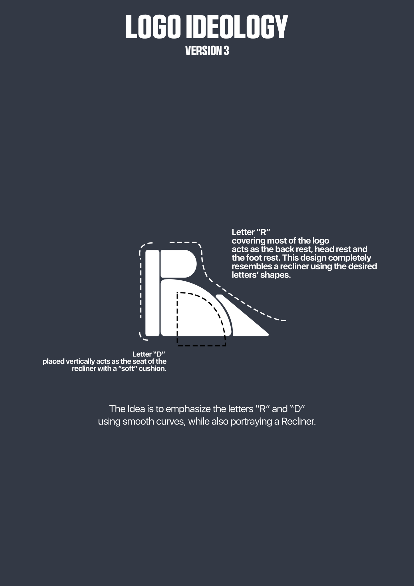 Recline and Design is a furniture brand for which I had designed their logo. The brief was to create a logomark that visually references a recliner while incorporating the initials R and D from the brand name.